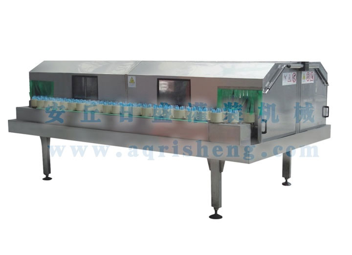 3)瓶子外壁分為循環(huán)水、純凈水兩次高壓水噴淋,配合無(wú)阻水式多功能定位瓶架、效果更好、用水最少。